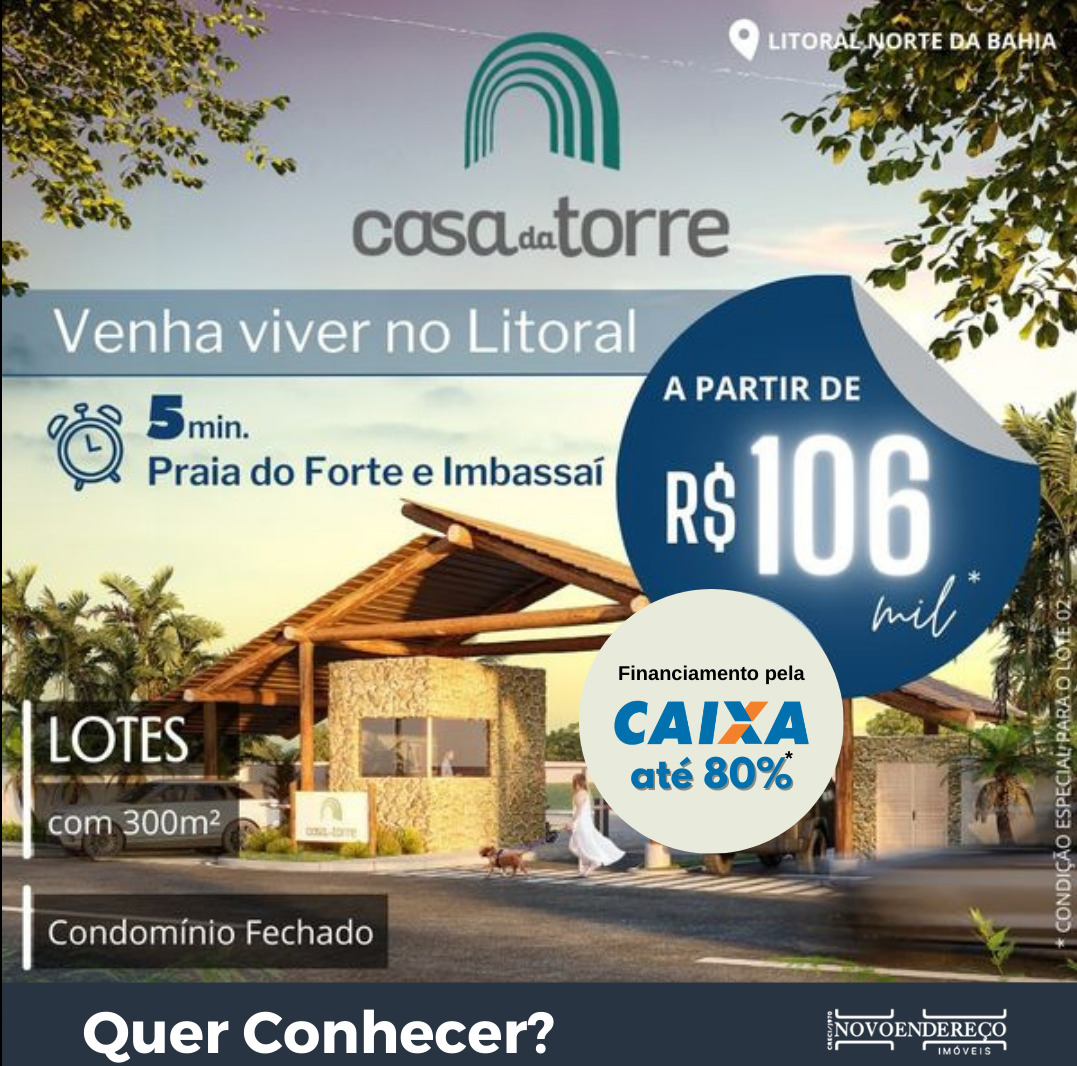 Está em busca de um lugar para construir momentos especiais em família, com muito conforto e segurança? Apresentamos a você o Casa da Torre, um condomínio fechado com lotes a partir de 300m², onde você poderá desfrutar da beleza do litoral norte, situado em frente à Praia do Forte, e com condições de lançamento super especiais.